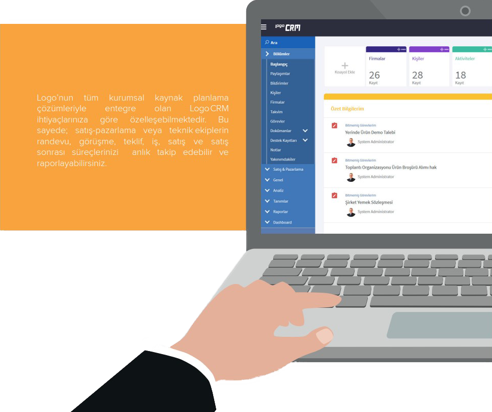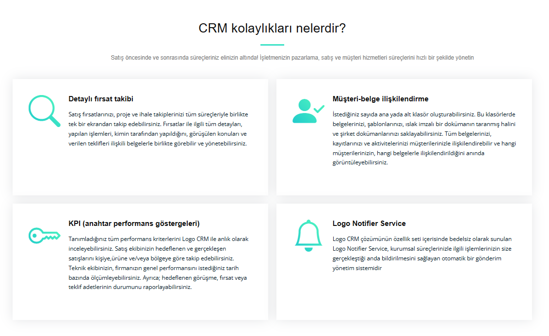 Tüm şirketler, müşterilerle doğru iletişimi kurarak mevcut müşterilerinin sadakatını artırmayı ve potansiyel müşterilerine ulaşabilmeyi hedefliyor. Siz de pazarlama, satış ve müşteri hizmetleri süreçlerini uçtan uca yönetmek, müşteri ilişkilerinde başarıyı yakalamak için yeni nesil teknolojilerle geliştirilen Logo CRM ile tanışın.