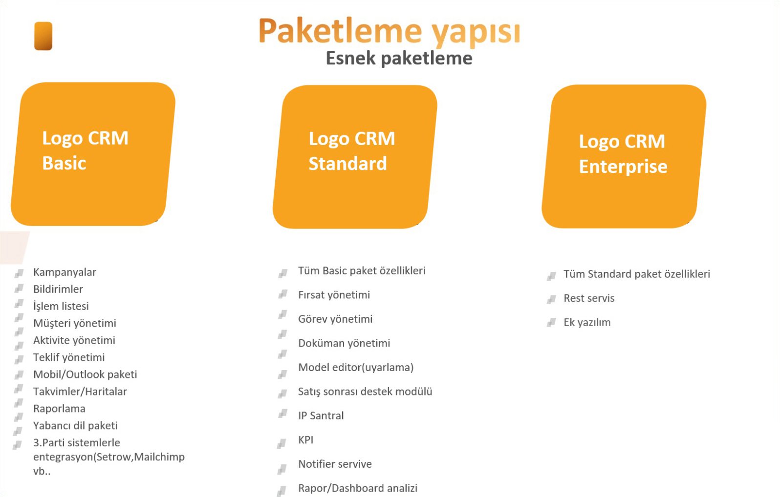 Her ölçekten işletmeler için değişen ve artan müşteri ihtiyaçlarına kolay takipSon yıllarda değişen ve artan müşteri istekleriyle birlikte hizmet beklentileri, iş dünyasının yaşadığı büyük değişimi ortaya koymaktadır. Rekabetin arttığı küresel pazarda firmaların başarısı için, ürün ve hizmet başarısı yeterli olmamaktadır. Bu yeni dönemde, kaliteli ürün ve hizmetle birlikte, firmaların ürün merkezli olmak yerine müşteri merkezli oldukları görülmektedir. Teknolojinin gelişmesi sonucu müşteri ile ilgili her bilginin takip edilebilir, talep ve bilgilerin firmalar tarafından kullanılabilir ve yönetilebilir olmalıdır. Bunu yaparken de çeşitli yönetim tekniklerinden, yazılımlardan ve teknolojilerden yararlanılması firmalara önemli ölçüde avantaj sağlamaktadır. Bilgi teknolojilerinin sağladığı imkanlarla, müşterilerin daha iyi tanınması, ilişkilerin geliştirilmesi ve alınan geri dönüşler doğrultusunda hizmet kalitesinin artırılması, mevcut müşterileri korurken yeni müşteri kazanma imkanını da ortaya koymuştur. Sektörler içinde ve hatta firmalar arasında değişen ihtiyaçlar doğrultusunda firmalara en uygun Logo CRM çözümünü bulmak, yeni dönemde avantaj yakalamanın ilk adımıdır. |