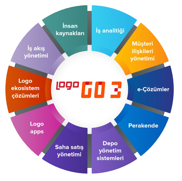 Logo GO 3 ile entegre çözümlerimiz İş Akış Yönetimi: İnsan kaynakları: Müşteri ilişkileri yönetimi: Perakende Depo yönetim sistemleri e-Çözümler: İş analitiği: |