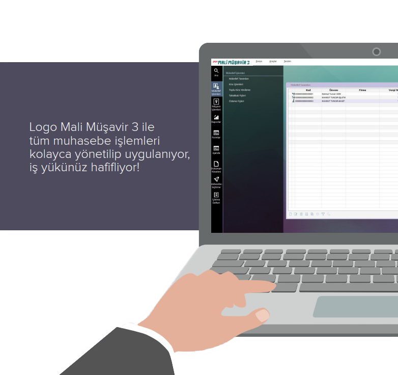 İşletmelere muhasebe ve müşavirlik hizmeti sunan Serbest Muhasebeci Mali Müşavirler, aynı anda çok sayıda şirketin iş yükünü üstleniyor. Logo, bu iş yükünü etkili şekilde yönetebilmek için güvenilir bir destek sunuyor: Logo Mali Müşavir 3. Bu çözüm, muhasebenin dijital dönüşümünde beyannamelerden bordrolara, defter beyan süreçlerinden büro yönetimine kadar çok sayıda modülle tüm işlemlerin kolayca yapılmasını sağlıyor; böylece iş yükünü azaltıp zaman tasarrufu kazandırıyor.